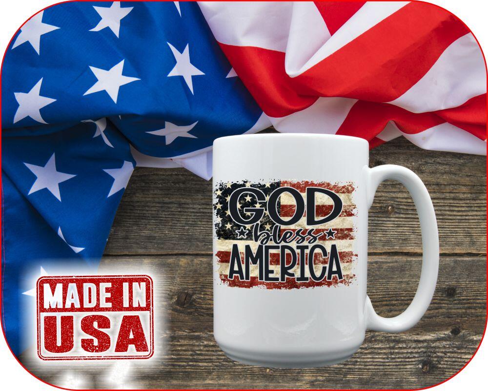 Embrace your patriotic spirit with our exclusive God Bless America Mugs & Steins! Crafted with love and patriotism, these ceramic treasures feature a stunning distressed flag design adorned with the powerful message, “God Bless America”. Available in various sizes including 11oz and 15oz coffee cups, 18oz beer steins, and 22oz tankards, there’s a perfect option for every beverage lover.