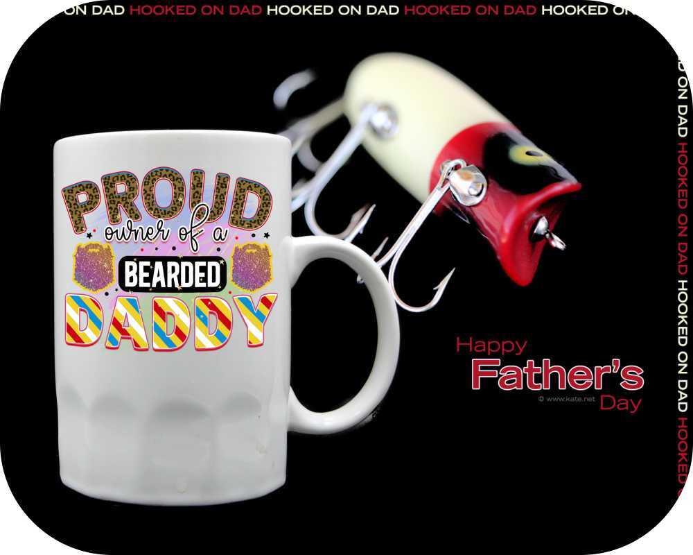 Unleash the dad jokes with our “Proud Owner Of A Bearded Daddy” mugs & steins, exclusively for bearded fathers! Personalize yours with photos, names, and even a child’s handwritten message. Choose from 11oz coffee cups to 22oz tankards in ceramic perfection. A perfect gift for the man who rocks both the baby cradle and the bearded look – add a touch of humor to his daily brew.