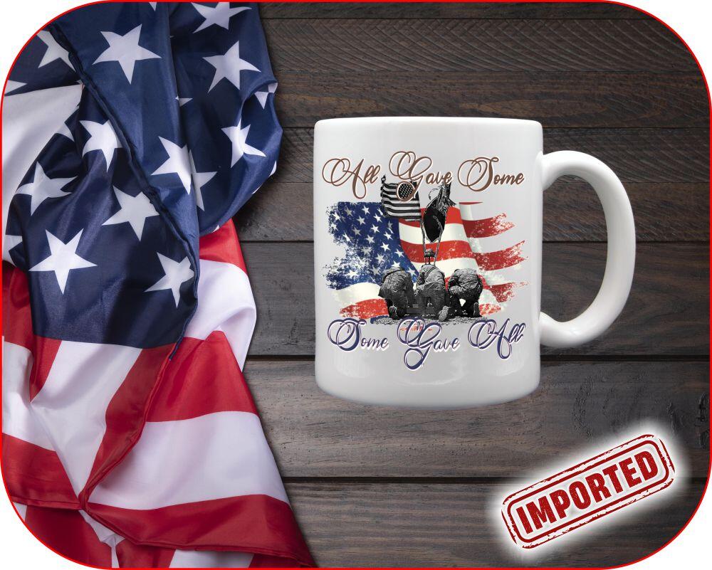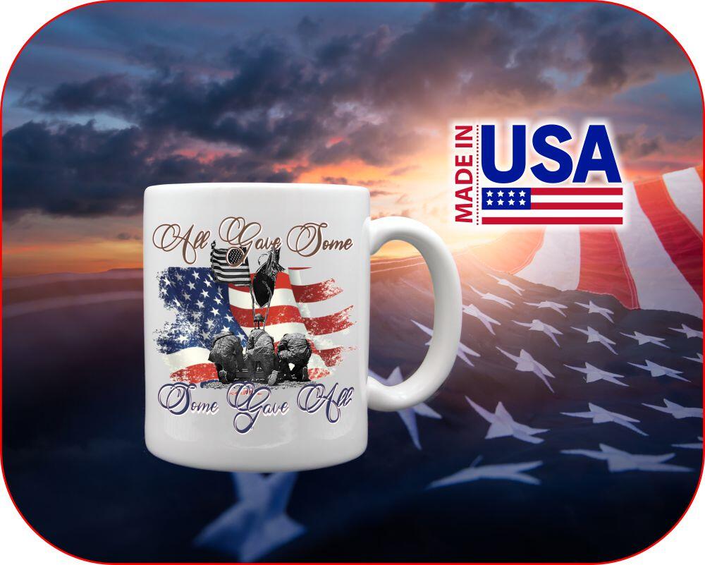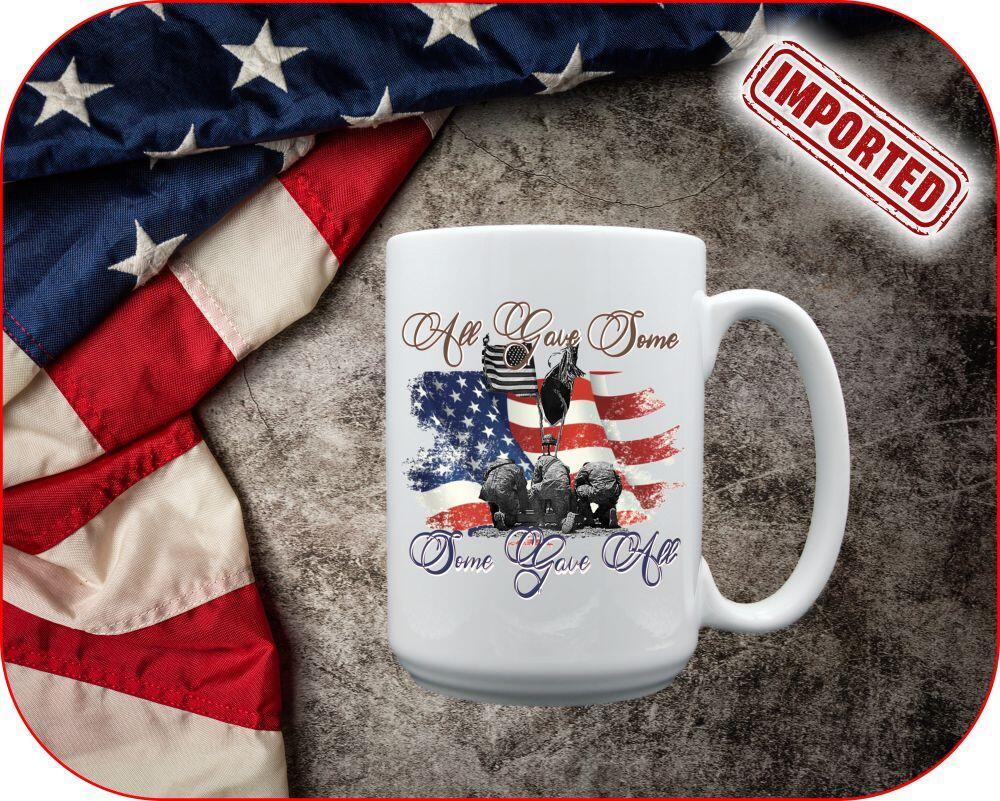 If you’re looking for an authentic 100% patriotic experience, we proudly present two options that are 100% Made in USA for these American Patriotic Quotes 15oz Made in USA mug | All Gave Some, Some Gave All