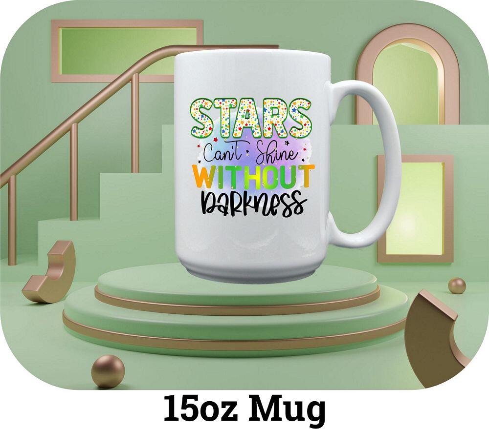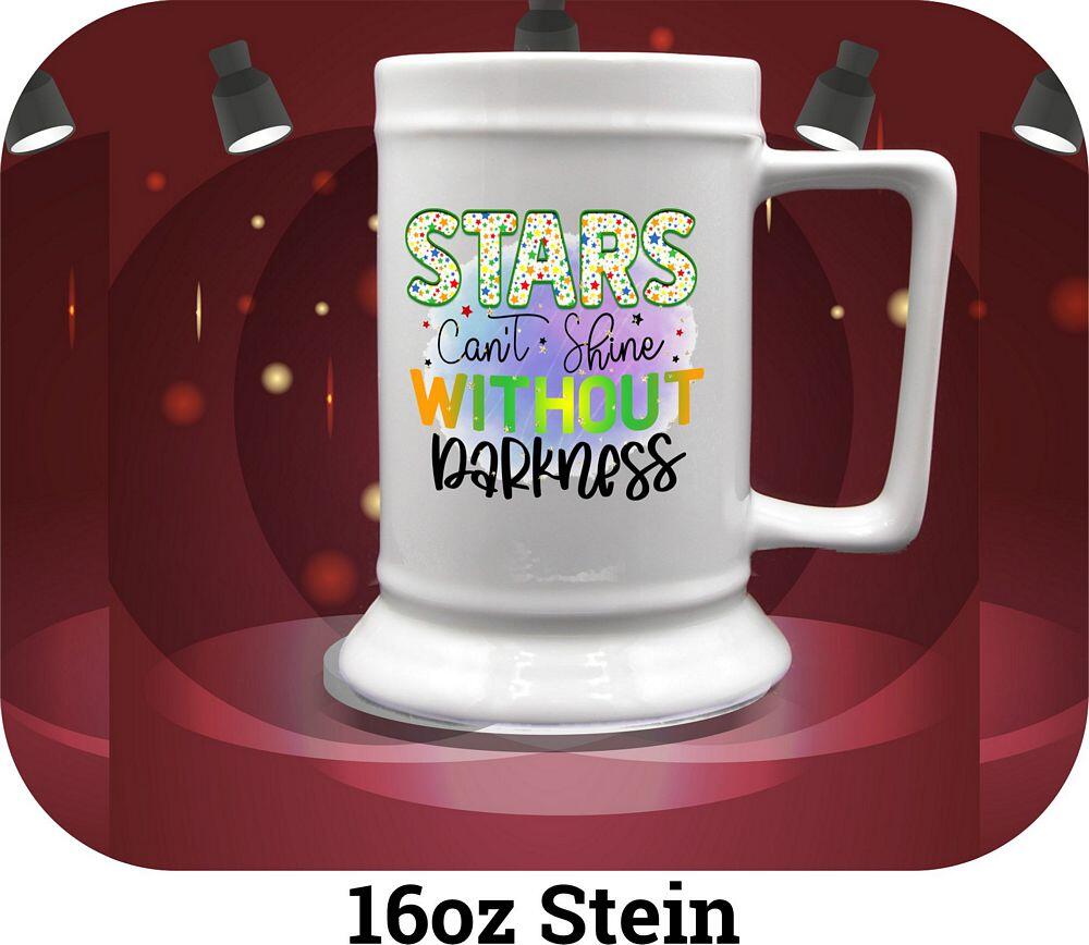 Let your morning coffee or evening brew be a source of inspiration with our collection of Inspirational Mugs & Steins printed with the powerful quote ‘Stars Shine Can’t Without Darkness’. Available in both 11oz and 15oz sizes for your perfect cup of joe or a hearty pint of root beer or beer in our traditional stein or tankard. Made from high-quality ceramic, these mugs are vibrantly printed to uplift your spirits every time you take a sip.