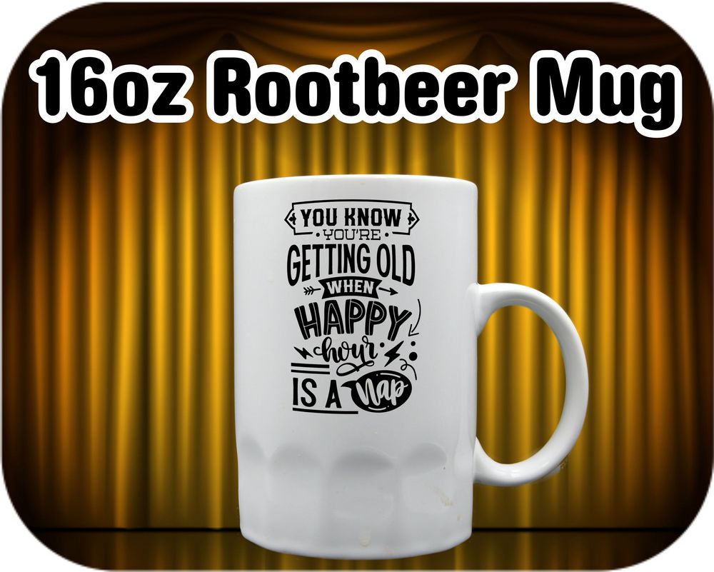 You Know Youre Getting…Celebrate life’s milestones with a touch of humor using our “You Know You’re Getting Old Baby” mugs and steins! Made from high-quality ceramic, these mugs come in 11oz and 15oz sizes perfect for your morning coffee, while the root beer mug, beer stein, and tankard options hold 18oz and 22oz for your favorite brews.