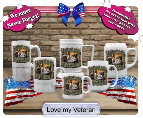 Celebrate Veterans Day with our customizable mugs & steins adorned with "Love my Veteran" print. Available in various sizes, including 11oz, 15oz, 18oz, and 22oz options. Choose from imported or 100% Made in USA mugs by HF Coors. Show your patriotism with every sip and support small American businesses. Honor our heroes with every drink!