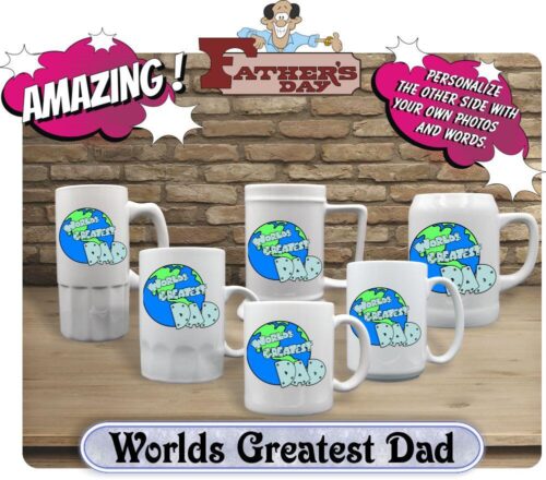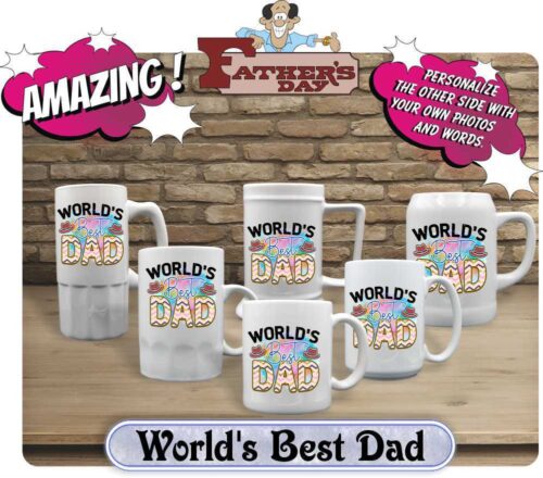 Celebrate the superhero in your life with our Best Dad Mugs & Steins! Crafted from high-quality ceramic, these mugs come in various sizes — from 11oz to 22oz — perfect for coffee or a cold brew. Personalize them with photos, names, and messages, including a special touch like a child's handwritten note. Make Dad's day every day with our bright "World's Best Dad" print. Add that extra love with a child's message today!Every dad is the world's best dad because he's "your" dad